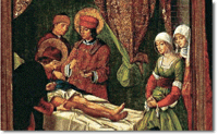 Figura 3. Justiniano. Los Santos habían amputado la pierna Gangrenada y en su lugar Trasplantaron la de un Etíope Negro Muerto la Víspera.