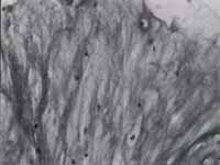 Incremento marcado de fibras colágenas (metaplasia de tejido conjuntivo laxo o denso) con fusión de los dos estratos por compactación de las fibras (SCAPINO, 1983).