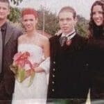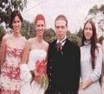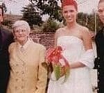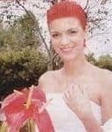 Bianca llegó en un hermoso Chevrolet negro modelo 57 de propiedad de su padre, y lucía un traje largo con chal diseñado por ella misma. El yugo estaba compuesto por tres anturios hoja cultivados por su madre y en su cabello anaranjado llevaba en la parte posterior un tocado elaborado en anturios miniatura.