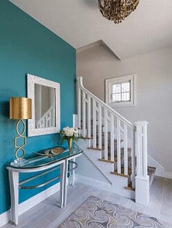 Azul: es un color fuerte y profundo, con un carácter más masculino, aunque existen varias tonalidades que puedes usar como azul marino, turquesa o un gris azulado. En el caso de los colores fuertes te recomendamos pintar solo una pared, puede ser la más grande del espacio si está bien iluminado.